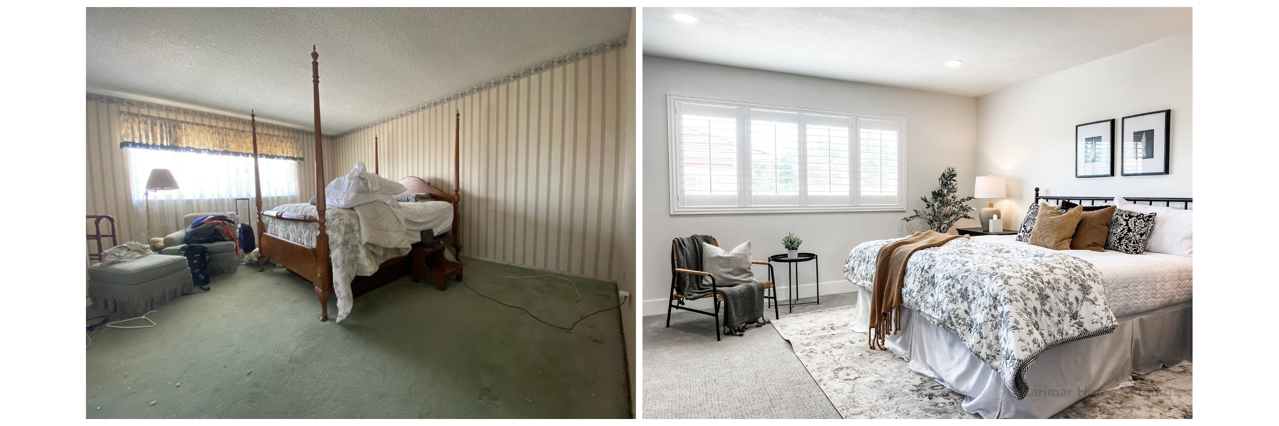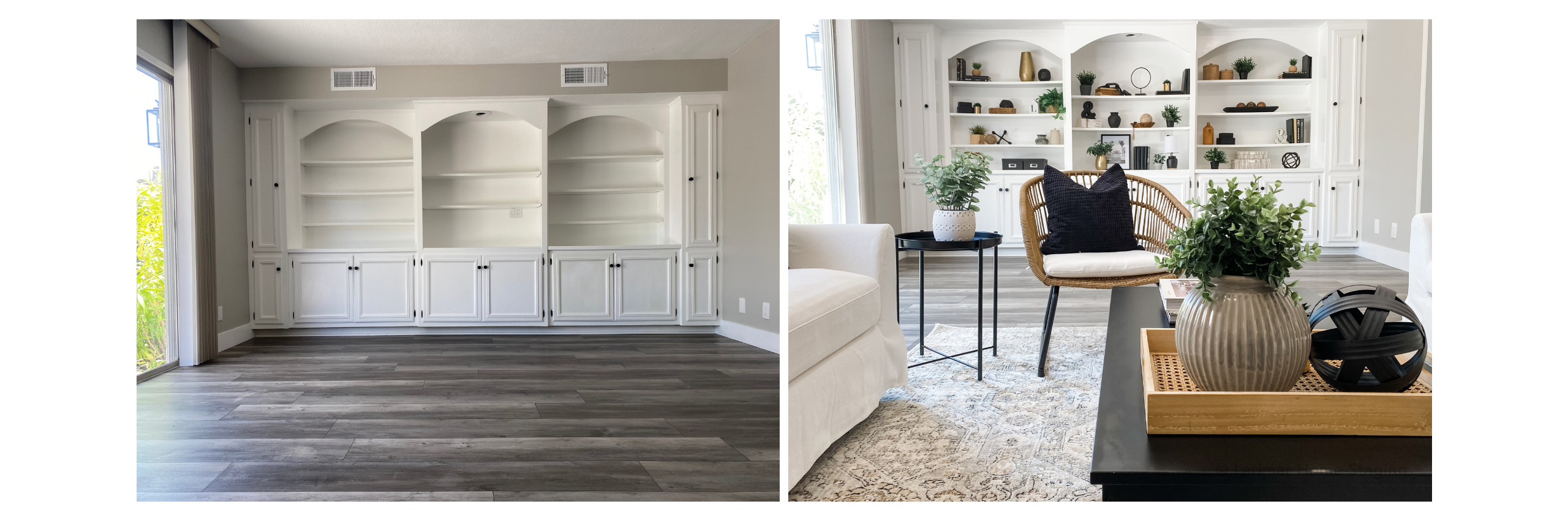 In the "before" on the left in the image below, you can see what the wood paneling looked like before they painted it white per our recommendation.
